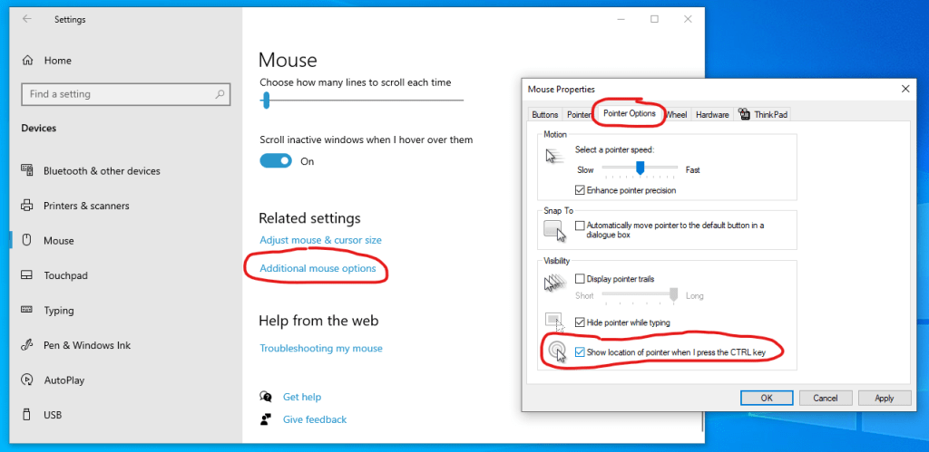 Side note: when using multiple screens I find it useful to set the CTRL key to show where my pointer is in case I have to find it. You can set this up at the mouse pointer settings here: