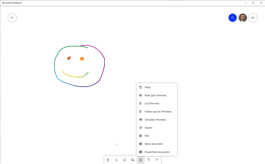 Speaking of automatic saving and coming back to your drawings… Whiteboard for the moment lacks the capability to be shared with people outside your organisation (it is in development). One of the other ways you can use whiteboard-like features that you will also be able to share is OneNote. Arguably it also has many more features for sharing and structure and some more. You just open OneNote, share your screen in the meeting and you can draw away. If you want to enable other meeting participants to draw together then you can use a notebook that has been shared across and they can open on their machines, follow along and contribute. (Note: the unit of sharing in OneNote is the whole notebook so make sure that you are ok to share all that content with participants or create a new blank notebook for the collaboration).
